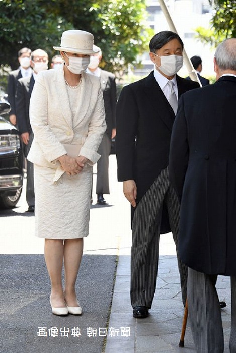 和装で使われる白いふくれ織りの生地で作られたスーツのようです。スカート丈をロング丈にするだけでも良いと思うのですが。新型コロナでお茶会もなく、雅子さまの公務も楽になってますね。気持ちと腰のリハビリに動くのに丁度良いのかもしれません。 関東地方も猛暑だそうですが、door-to-doorで車内も日本学士院会館もエアコン効かせて涼しいのでしょう。