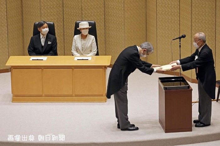 天皇、皇后両陛下は27日、東京・上野の日本学士院会館で開かれた日本学士院賞の授賞式に出席された。同賞は学術上優れた研究業績に贈られ、今年度は河西春郎・東京大国際高等研究所特任教授(65)ら9人が受賞。河西氏には恩賜賞も、大河内直彦・海洋研究開発機構海洋機能利用部門長(56)には日本学士院エジンバラ公賞が贈られた。両陛下は壇上で拍手を送った。昨年と同様、新型コロナウイルスの影響で式後に受賞者を皇居・宮殿に招く茶会は中止になった。