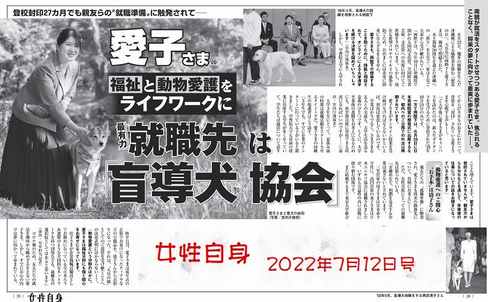 愛子さま同級生が就活シーズン突入!就職先の最有力候補に「盲導犬協会」が浮上
