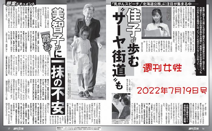 週刊女性も皇女の愛子さまを差し置いて、佳子さまと書くのは失礼じゃないかしら。美智子さま、愛子さまへ祭主の希望・・・とかなんとか書いてやったら~?