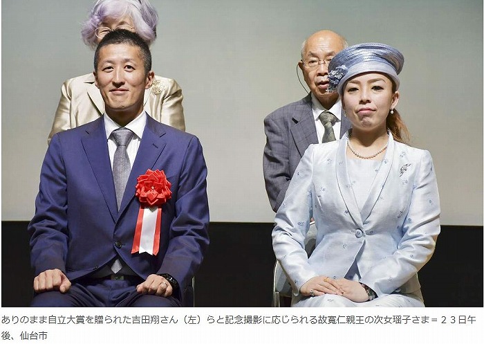 三笠宮家の瑶子さまは23日、仙台市の福祉プラザを訪れ、自立して活動する障害者や支援者を表彰する第22回ありのまま自立大賞の授賞式に出席された。賞は父の寬仁親王殿下が総裁を務めた社会福祉法人「ありのまま舎」(同市)が主催した。自立大賞は、先天性難聴があり、耳鼻咽喉科の専門医を目指す長崎市の医師吉田翔さん(38)に贈られた。感音性難聴がある瑶子さまは選考委員長