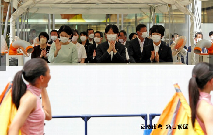 それでも秋篠宮ご夫妻も悠仁さまも嫌な顔ひとつせず、にこやかにパレードを見ている姿には感心しました。暑くても我慢して不快感を与えない、皇族とは人並外れた忍耐を伴うものなのですね。パレードに参加している生徒さんたちも、同じ高校生の悠仁さまに見て拍手して頂いて嬉しかったでしょうねぇ。