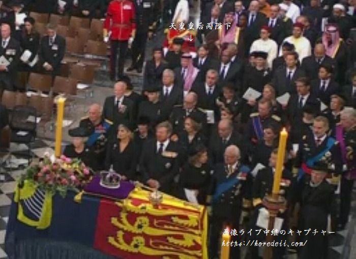 映像はイギリス王室メンバーを映すこと、上からウェストミンスター寺院を映すことが多く、他国からの参列者はなかなか映りません。