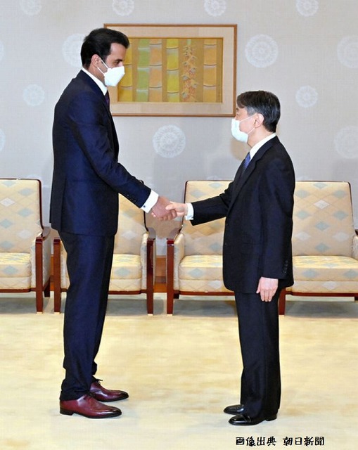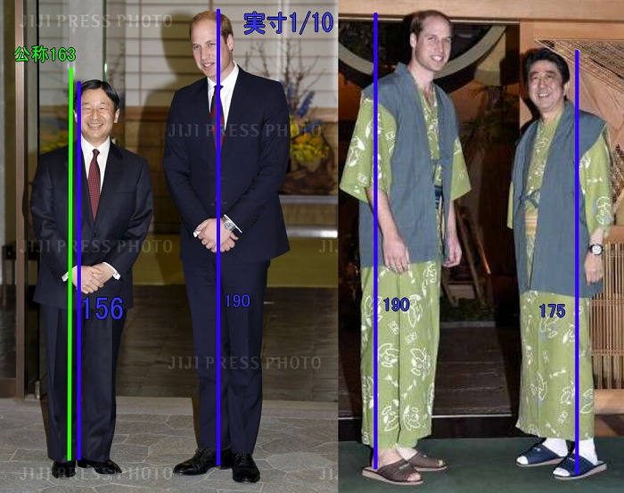 安倍晋三元首相の国葬に参列するため来日したカタールのタミム首長との会見の写真もヤフーニュースに10月3~9日の予定を発表でこの写真が使われていました。タミム首長の身長が高すぎなのでしょうが、天皇陛下は公称163㎝ですが、実際は156㎝だと、イギリス王室のウィリアム皇太子が1人で来日した時に、190㎝のウィリアム皇太子と並んだ天皇陛下の写真を1/10にして実際の天皇陛下の身長が出されていました。故安倍元首相のように175㎝あると良いです。