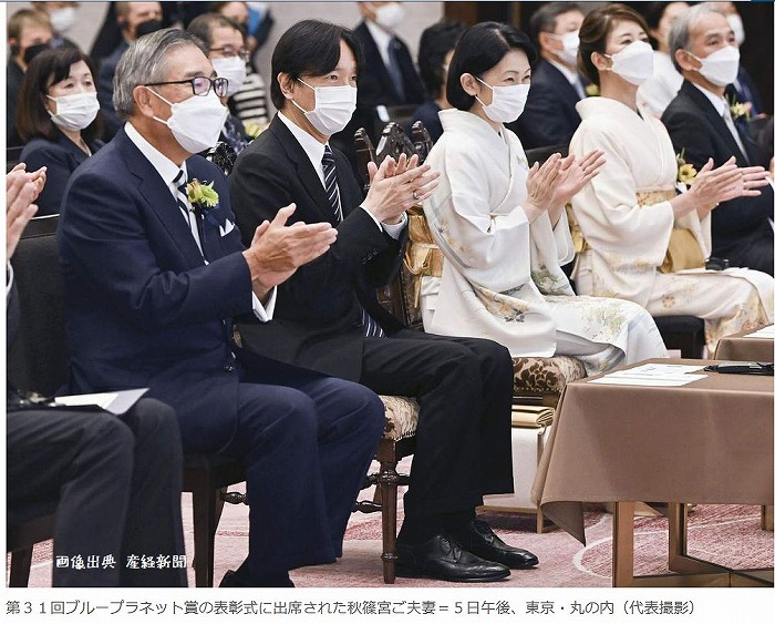 秋篠宮ご夫妻は3年振りに「ブループラネット賞」の授賞式に出席されました。