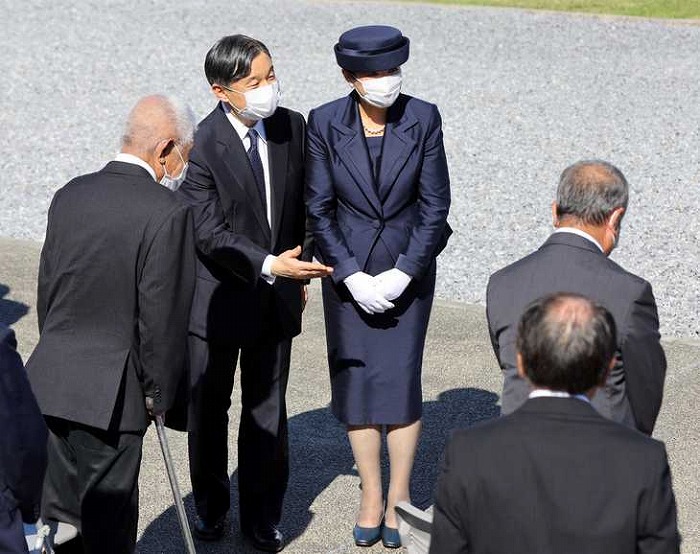 同日午後2時半ごろ、戦没者墓苑で両陛下は納骨堂に向かい、静かに花をお供えに。続いて遺族らと面会し、言葉を交わされた。