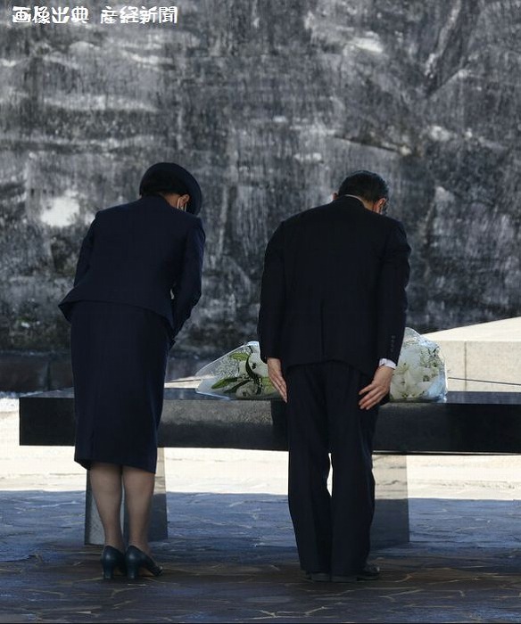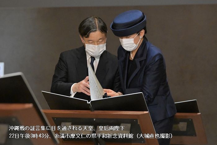 天皇、皇后両陛下は22日、羽田空港から特別機で沖縄県に入られた。那覇空港を車で出発して糸満市に移動し、国立沖縄戦没者墓苑にご供花。平和の礎や、県平和祈念資料館を視察された。