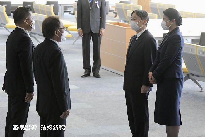 両陛下はその後、平和の礎にご移動。担当者の説明を聞きながら、犠牲者の名前が刻まれた石碑をご覧になった。県平和祈念資料館では、先の大戦の沖縄戦に関する展示を見学された。