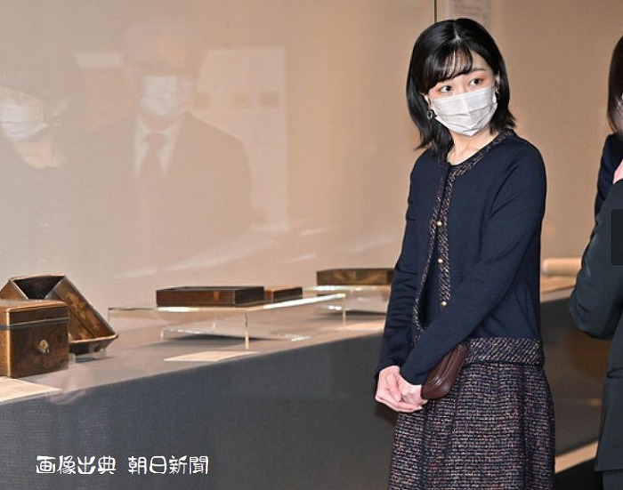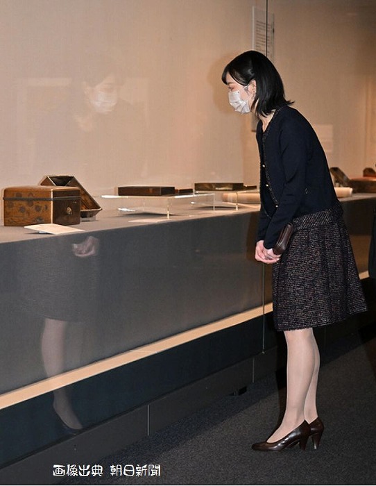 秋篠宮家の次女佳子さまは8日、東京・日本橋の三井記念美術館で開催中の特別展「大蒔絵(まきえ)展―漆と金の千年物語」朝日新聞社など主催)を鑑賞した。佳子さまはこの日、ジャケットの縁取りやスカートがツイード地の、秋らしい装いで訪れた。大輪の八重菊や柄(え)の長いひしゃくが描かれた重要文化財の「菊慈童蒔絵手箱」の前では説明に耳を傾け、のぞき込むようにして鑑賞した。記事・画像出典 朝日新聞https://www.asahi.com/articles/ASQC86TBZQC8UTIL025.html