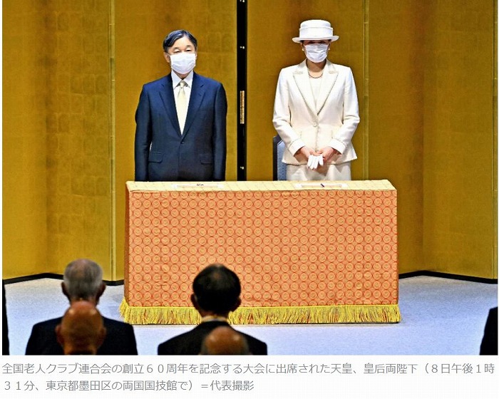 天皇、皇后両陛下は8日、東京都内で開かれた全国老人クラブ連合会の創立60周年を記念する大会に出席された。同会は1962年、老人クラブの発展と高齢者の保健福祉の向上を目的に発足。天皇陛下はあいさつで、長年の貢献をたたえ、「老人クラブが我が国における高齢者の社会参加や明るい地域づくりのために重要な役割を果たしていくことを期待しております」と述べられた。これまで10年ごとの節目には在位中の上皇ご夫妻が出席されていた。記事・画像出典 読売新聞 https://www.yomiuri.co.jp/koushitsu/20221108-OYT1T50198/