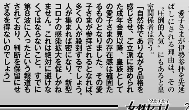 他に女性セブンの以下の理由もあるのかな(笑)愛子さまの圧倒的人気で行かないとか。