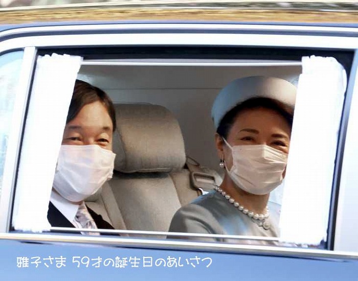 上の画像が今年59才で下が去年の58才の時の同じ上皇ご夫妻にあいさつに行かれる時の画像です。去年と今年と物凄く似ているので間違うところでした。 雅子さまも今年は別の色にしたら良かったのに。 愛子さまの誕生日とご自身の誕生日を終えてホッとしたでしょう。予定を出さなくなったので分かりませんが、今年中にまだ1、2回はお出ましするんじゃないでしょうか。