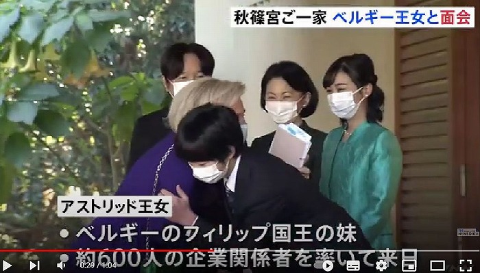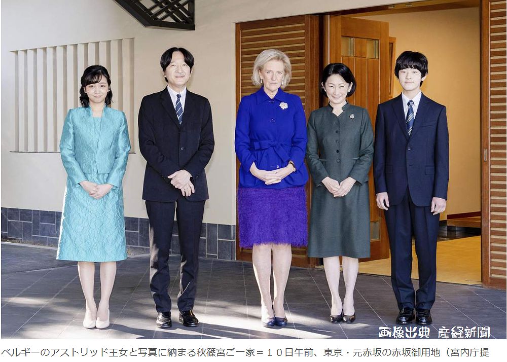 アストリッド王女はベルギー王室 フリップ国王の妹です。12月5日(月)から9日(金)まで、ベルギー国王陛下の名代として約600名の経済代表団を率いて来日とは、日本の皇室では考えられないことを王族がやっています。本日、10日は秋篠宮邸を訪問しご一家と懇談されました。