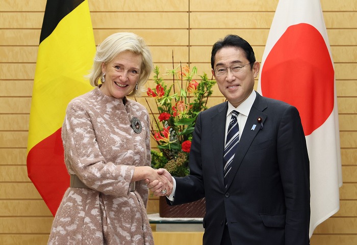岸田文雄首相は5日、首相官邸でベルギーのアストリッド王女と会談した。洋上風力や水素、次世代半導体などの分野での2国間協力に触れ、経済関係強化に期待感を示した。王女も両国関係を発展させたいと答えた。