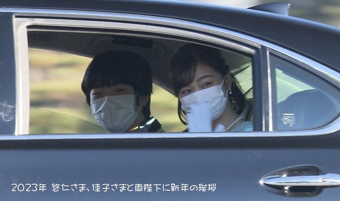 秋篠宮ご一家は4人家族なので、秋篠宮ご夫妻と悠仁さま、佳子さまの2台の車で天皇皇后両陛下に新年の挨拶に伺いました。佳子さまが降嫁され3人になったら、天皇家のように3人横並びだろうか?