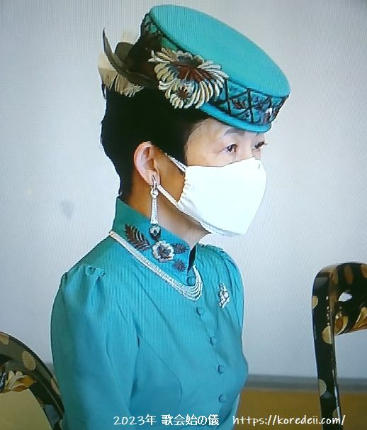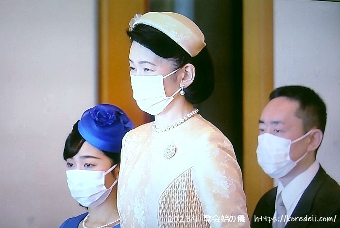 他に三笠宮家から彬子さま、高円宮家から久子さまが、チャイナドレスかアオザイか~~いえいえ、マオカラーと呼ぶ形です。これは愛子さまが初めて新年一般参賀にお出ましした時の、チャイナカラー、いえいえマオカラーの異国情緒たっぷりの地味なドレス、あまり評判が良くないと思ったか、マオカラーのローブモンタントは他の女性皇族も着ていますよ!との意思表示を示したように思えました。