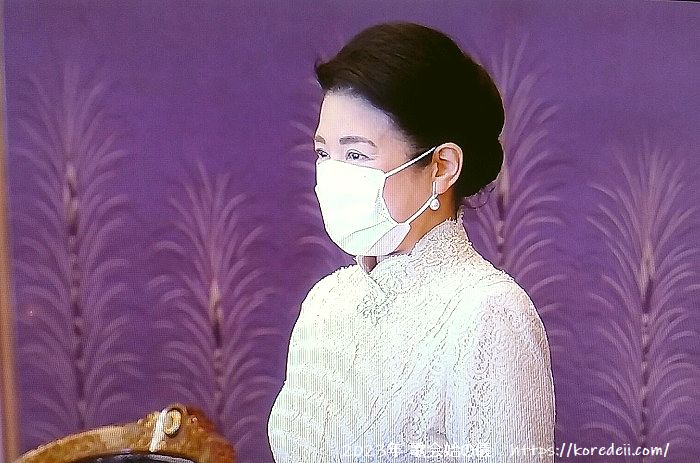 録画を見て思ったのが女性皇族方のローブモンタントでした。雅子さまがお召しになっていたローブモンタントは2015年 トンガ国王の戴冠式で着用されていたドレスでした。まだ写真が沢山アップされていないのでスマホでテレビを撮りました。