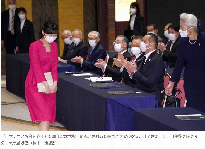 *佳子さま、テニス協会創立100周年式典ご臨席