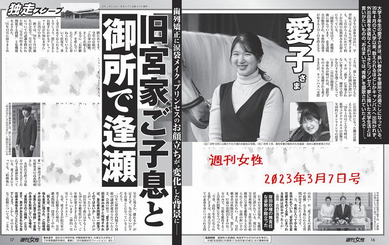 女性週刊誌記事 秋篠宮ご夫妻チャールズ国王3世戴冠式に出席決定?? *愛子さま旧宮家ご子息と御所で逢瀬