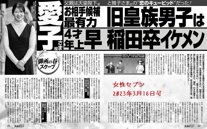 さて本題の愛子さまのお相手の話、最近多いですね。