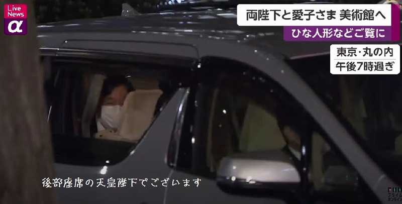 私的、プライベートだからか、天皇陛下は恒例の後部座席でした。我々庶民なら後部座席は荷物席ですが、天皇家では上席のようです(^^)