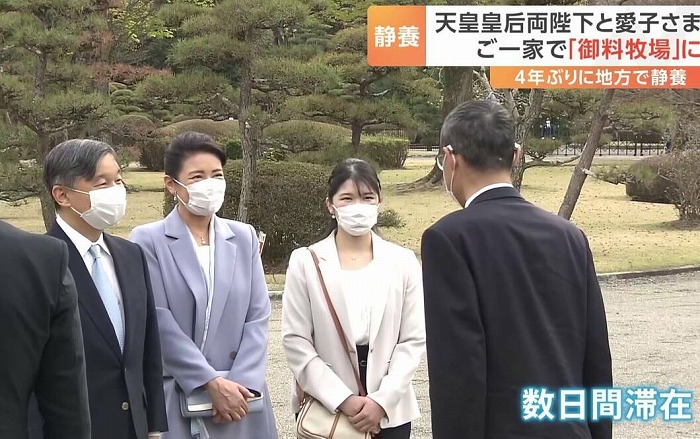 ご一家は皇居・御所から栃木県へ車で移動し、牧場で福田富一県知事らから出迎えを受けられた。その後、敷地内にある馬の放牧地をご散策。天皇陛下は久しぶりの静養について、「とてもうれしく思います」と述べ、関係者に感謝の気持ちをお示しに。皇后さまは「新緑もきれいで」と笑顔を見せられ、長女の敬宮愛子さまは「動物たちを眺めたり、野菜を収穫したり、充実した時間を過ごすことができればと思います」と述べられた。天皇、皇后両陛下は昨年10月、栃木県で開催された国民体育大会に臨席するためコロナ禍で初めて東京都外へ足を運んで以降、地方訪問を再開されている。