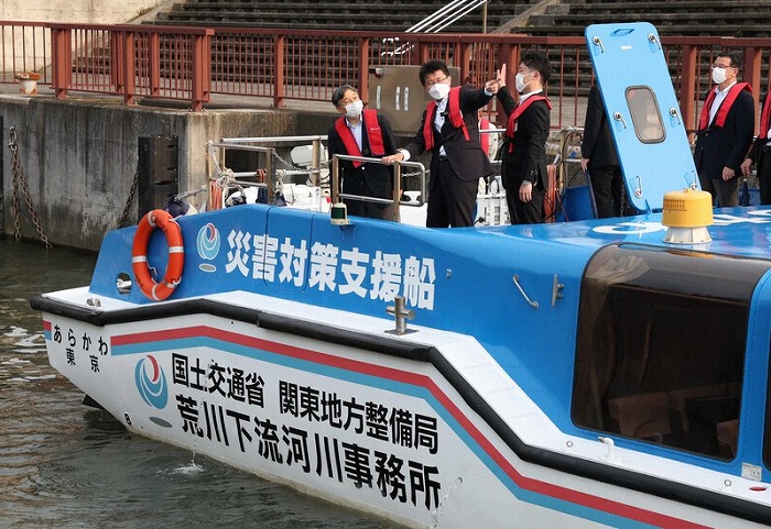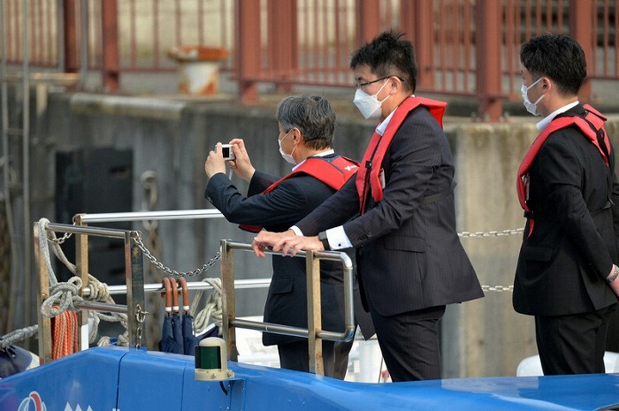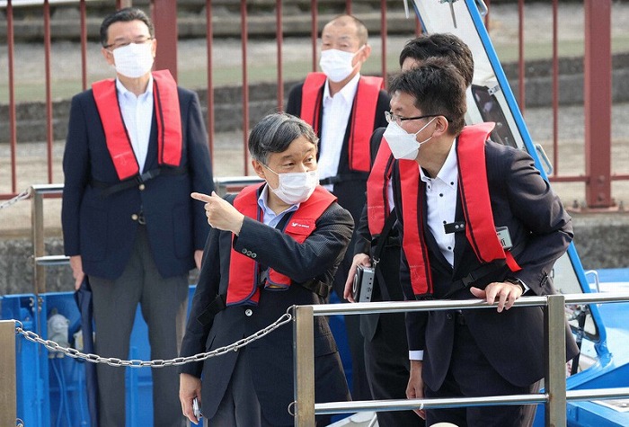 天皇陛下、東京の荒川ロックゲート視察 船に乗り、写真撮影も