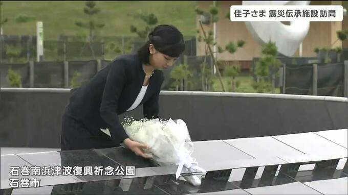 24日の全国都市緑化祭ご出席のため宮城県入りをした佳子さまは、23日は石巻市の石巻南浜津波復興祈念公園で供花、「みやぎ東日本大震災津波伝承館」「門脇小学校」など視察されました。