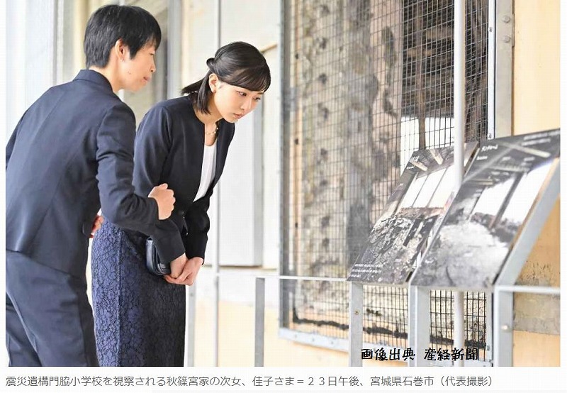 未曾有の東日本大震災から12年経ち、風化させない為にもこうして皇族、特に佳子さまがお出ましになると全国ニュースでも取り上げられるので、こういう訪問は継続してやって頂きたいものです。