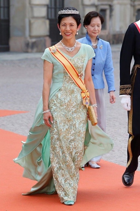 久子さまのスウェーデン結婚式、国王70才誕生日祝賀でのドレス。まだ若かったこともありましたが、ヨルダン結婚式より見た目の良いドレスを着ています。今回はヨルダンという国を意識し過ぎてのドレスだったのでしょうか。