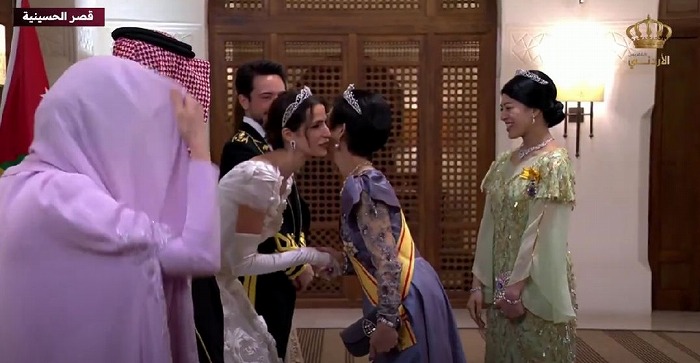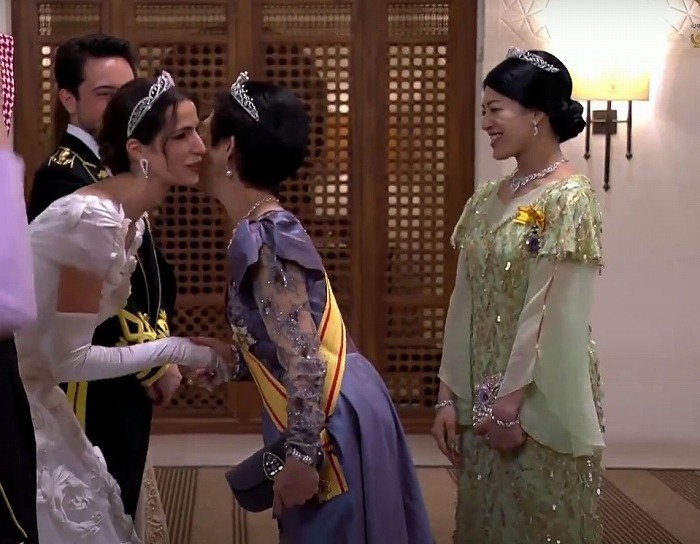 ヨルダン皇太子の晩餐会でも、皆さま素晴らしいドレスをお召しでした。日本の皇室からは久子さまと承子さまが結婚式、晩餐会に出席されました。お2人の衣装はこういう路線なのだな!と、そのように思って見ました。