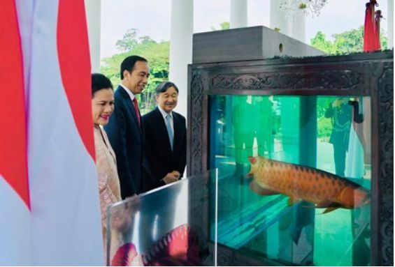 インドネシアのジョコ大統領から天皇陛下に高級熱帯魚アロワナが贈られた。ボゴール宮殿で天皇、皇后両陛下は、水槽の中で優雅に泳ぐアロワナの姿をジョコ大統領夫妻と共に笑顔で見守られていた。