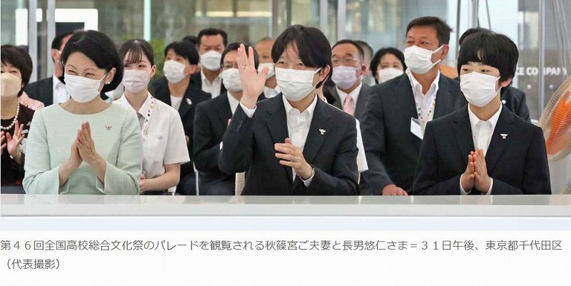 また悠仁さまは秋篠宮ご夫妻と初めて地方公務に同行されるとのこと。夏休みを利用して今月末7月29日から1泊2日で鹿児島訪問、全国高校総合文化祭に出席。