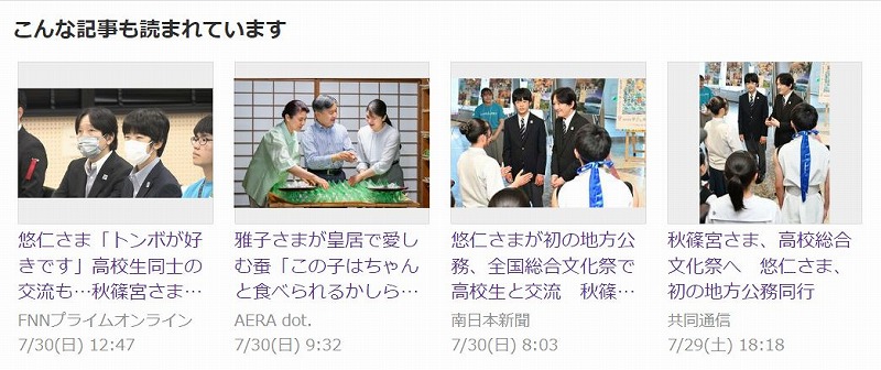 ヤフーニュースも困っているじゃないですか。悠仁さまが初めての地方公務、総文に出席の記事に紛れて、2か月も前の今更なんで??の雅子さま養蚕記事を出していました。本当にもう天皇家ではネタが無いんです。悠仁さまの地方公務に続いて佳子さまの甲子園で全国女子高校野球決勝を観戦と若い皇族のお出ましが続きました。