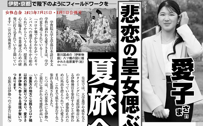 嘘吐き週刊誌の女性自身は愛子さま夏休み旅行に伊勢神宮と書いていましたが、愛子さま、伊勢神宮参拝に行く気は無いのでは?