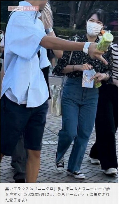 webのタイトルは【独自】愛子さま、学生最後の夏休みはユニクロ私服で東京ドームシティへ!身長180cm超えのイケメンとペアで満喫されたお忍び遊園地デート」