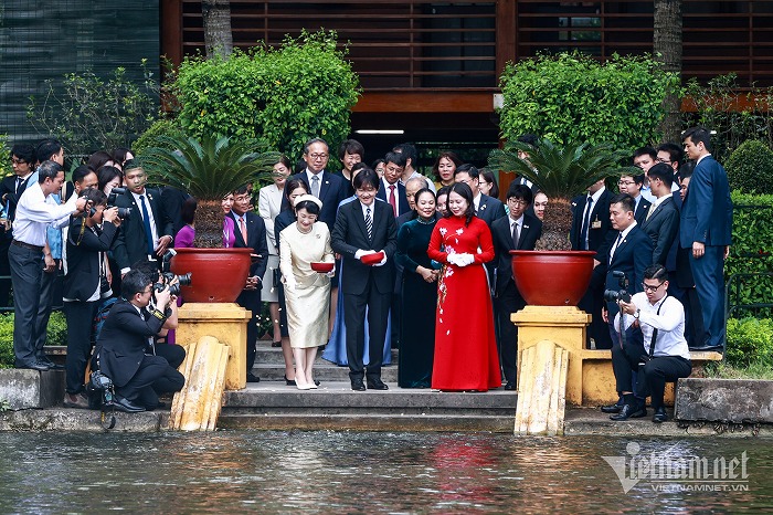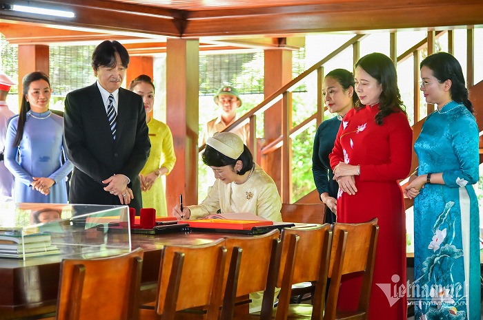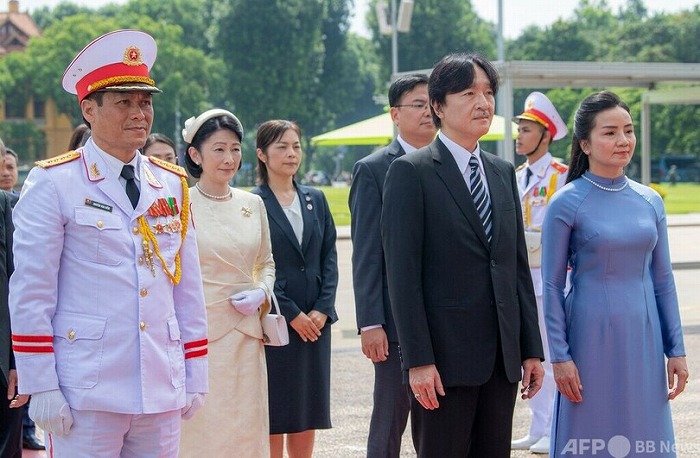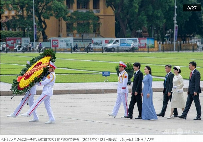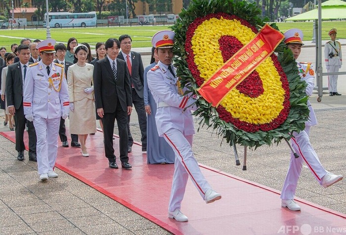 ご夫妻はこの日、「ベトナム建国の父」と呼ばれるホー・チ・ミン初代国家主席の遺体が安置された廟(びょう)で供花し、ホー氏が晩年を過ごした自宅も見学された。