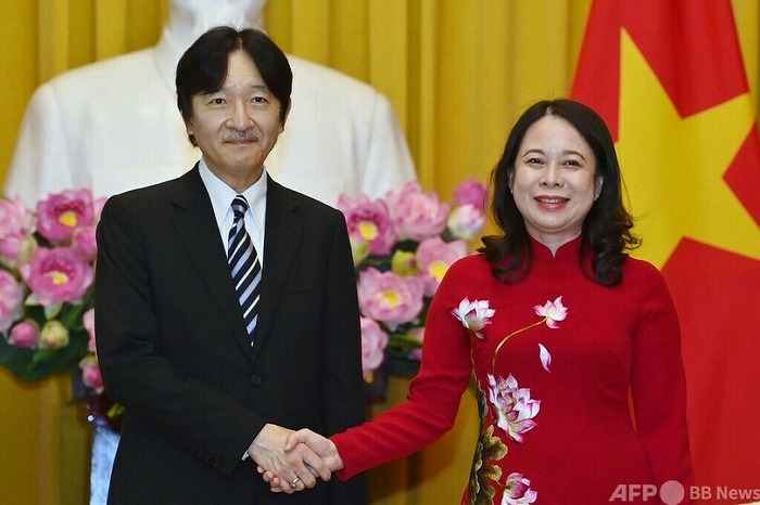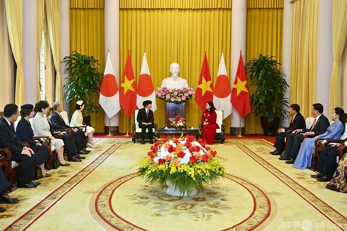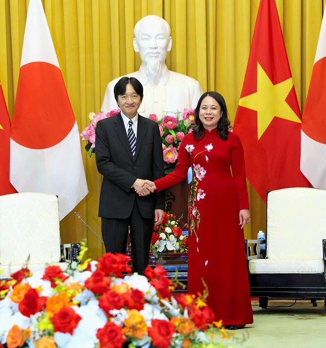 【ハノイ=村嶋和樹】ベトナムを訪問中の秋篠宮ご夫妻は21日、首都・ハノイの国家主席府を訪れ、ボー・ティ・アイン・スアン国家副主席主催の歓迎式典など、公式行事に臨まれた。