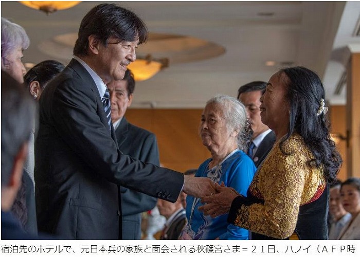 また、元ベトナム残留日本兵の2世・3世ら19人と宿泊先のホテルでご面会。「北海道に帰った父のことを知りたい」「日本の家族とつながりたい」といった2世らの願いに耳を傾けられた。記事出典 産経新聞