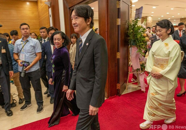 ご夫妻は式典で、スアン副主席の出迎えを受け、握手を交わされた。式典後に行われた午餐(ごさん)会で、秋篠宮さまは「両国の友好関係は、千年を超える長い交流の歴史の中で培われてまいりました」とお述べに。今回の訪問で「これからの50年を担う人々と接し、改めて両国関係についての理解を深める機会にしたい」とあいさつされた。