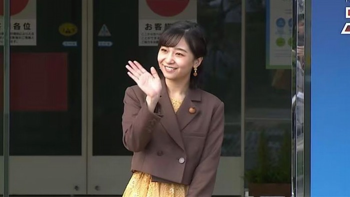 焦げ茶色のショートジャケットに秋を感じました。おそらくブローチは木製の可愛い林檎、同系色のイヤリング、以前も着用された黄土色のレースのワンピースでした。口紅の色まで装いに合わせています。佳子さまはとてもお洒落ですが、見る人達に不快感を与えないこともわきまえて楽しまれているようです。 表情豊かな佳子さまを迎える方々は嬉しいでしょうね。 今回は新型コロナに感染し残念に思っている方々も多いはずです。