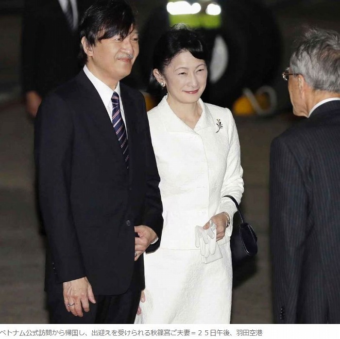 25日の夕方、秋篠宮ご夫妻は政府専用機でベトナムから無事に帰国されました。26日は早々に天皇皇后両陛下にベトナム訪問を終えた挨拶に皇居を訪問されました。大変なハードスケジュールを終えて帰国した翌日には挨拶で訪問ですから皇族も大変です。
