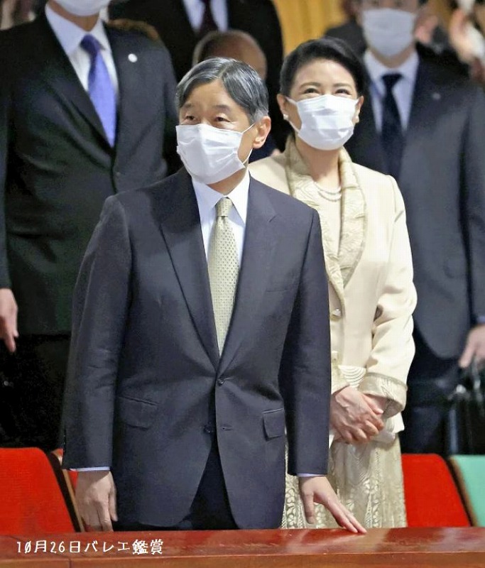 10月26日は勤労奉仕団ご会釈(皇居・蓮池参集所)がありましたが、天皇陛下だけ、雅子さまは相変わらず勤労奉仕団への会釈も無し。同日午後は天皇皇后2人でバレエ鑑賞されていました。