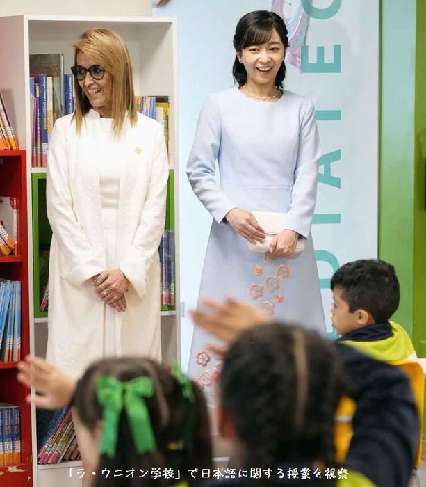 ペルーを公式訪問中の秋篠宮ご夫妻の次女、佳子さまは8日午前(日本時間9日午前)、首都リマで、日本の文化や価値を伝承する授業に取り組む「ラ・ウニオン学校」を視察された。1971年に日系人が創立し、小学生と中学生の約1200人が在籍する。