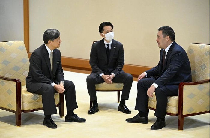 天皇、皇后両陛下は17日、公式実務訪問賓客として来日したキルギスのジャパロフ大統領夫妻を皇居・宮殿に招き、会見された。