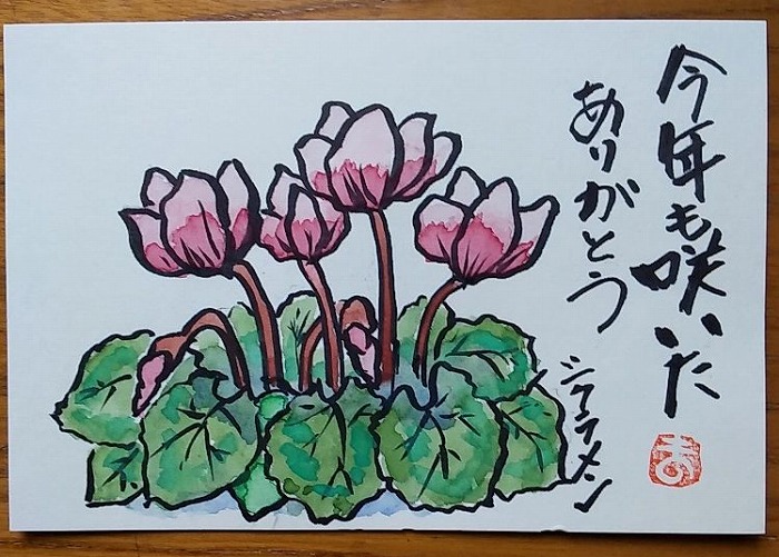 絵葉書のシクラメン、とても素敵に書けましたね(^o^)