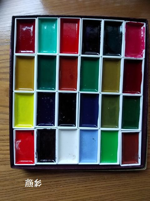 教会の方から24色の顔彩を頂きました。筆も頂いたけど使い慣れないので絵の具の筆で練習しました。「ま」の落款は昔からある文房具屋に売っていたので買いました。ボカシが下手、文字ももっと遊び心のあるアートな文字を書けるように練習してまた大家さんに送りたい。