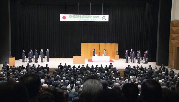に黙祷が捧げられた。秋篠宮さまはおことばの冒頭で、「ここに心よりお見舞いを申し上げますともに、被災地の復旧・復興を、この大会の場から願っております」と述べ、被災地にお見舞いの気持ちを示された。その上で「運転者や歩行者それぞれが相手の立場に配慮し、思いやりのある行動をすることが求められております」と安全な社会への願いを述べられた。