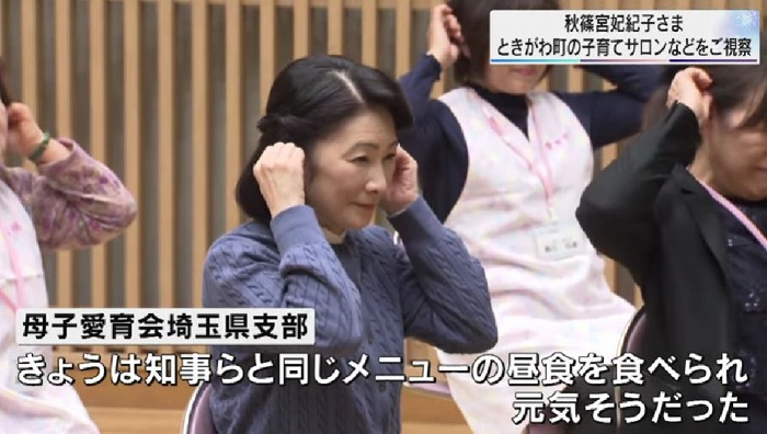 歌会始の儀の前日、紀子さまは埼玉県ときがわ町を訪れ、県内の母子愛育会の活動を視察されました。埼玉県支部によりますと「紀子さまは去年の年末から体調不良が続いていましたが18日は大野知事らと同じメニューの昼食をとられ、元気そうだった」ということです。(動画より)