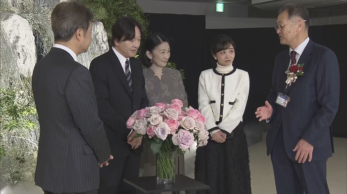 秋篠宮ご夫妻と二女の佳子さまが「関東東海花の展覧会」を鑑賞されました。東京・池袋で開催されているこの展覧会は、1都11県と花に関係する6団体が主催するもので、秋篠宮ご夫妻と佳子さまは、去年に続いて3人で鑑賞されました。ご一家は、茨城県にある「袋田の滝」をシダレヤナギなどで表現したオブジェや新種のバラを香りを確かめるなどして見学し、佳子さまはブライダル向けに作られた薄紫色のバラについて、「名前は?」とたずねられていました。また、高校生が2人1組になって即興で花をいける「花いけバトル」を見学し、佳子さまは「普段はどうやって練習されているんですか」などとたずね、秋篠宮さまは「見事にバランスよく生けられていますね」、紀子さまは